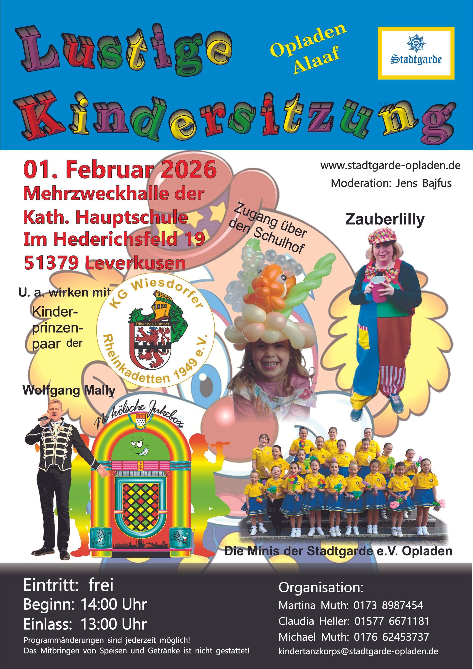Kindersitzung Sonntag, 1. Februar 2026 - Katholische Hauptschule im Hederichsfeld / Opladen - EINTRITT FREI! -